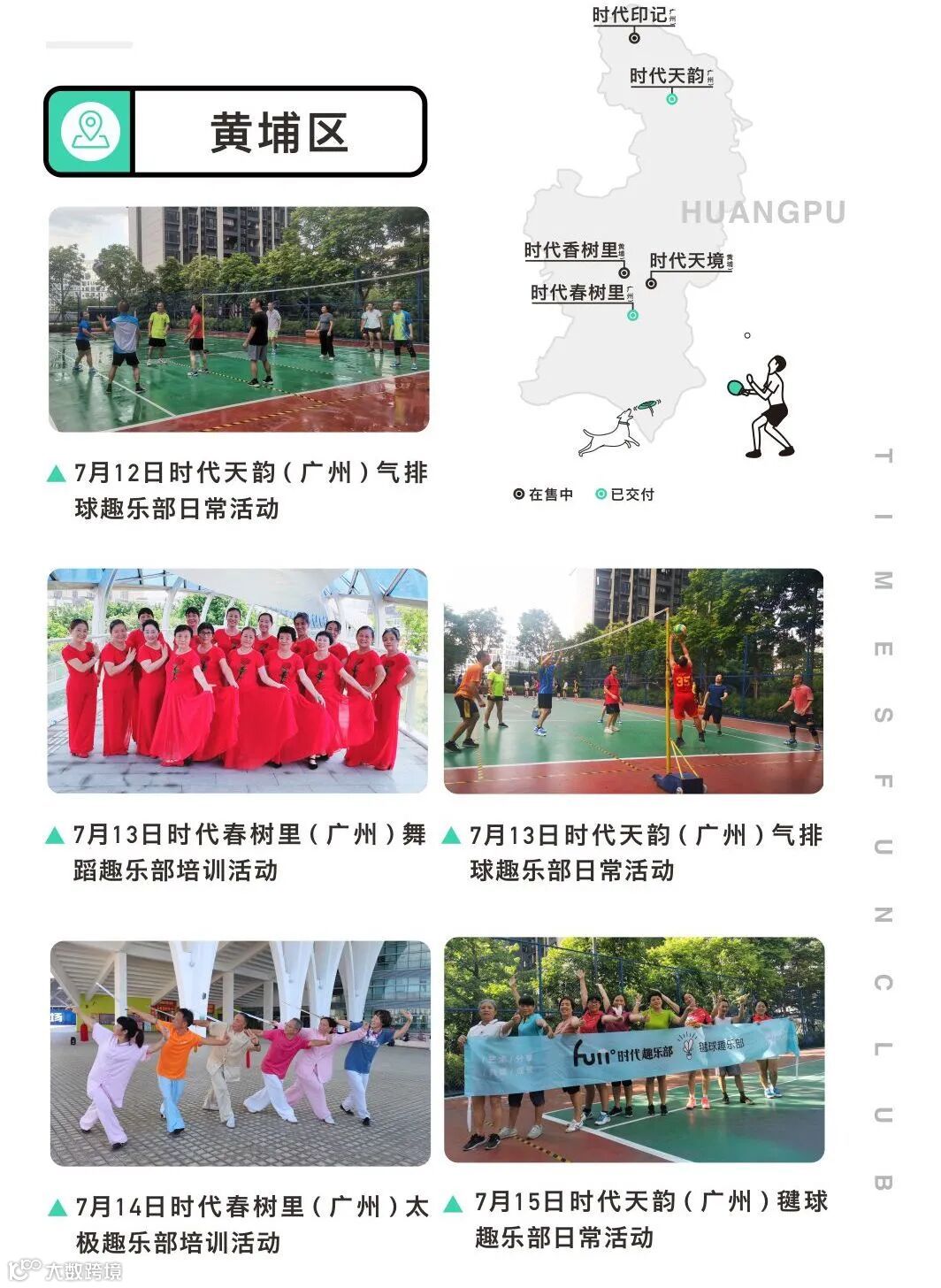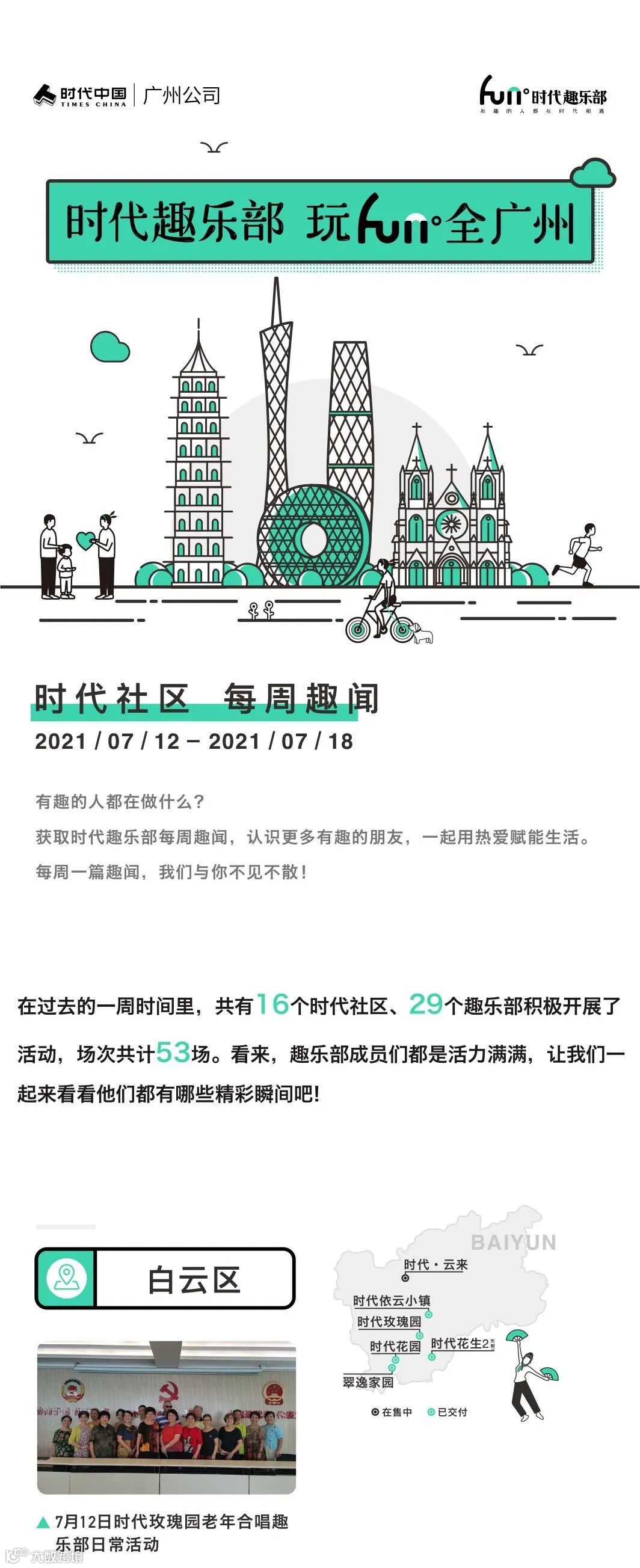 目前,广州时代趣乐部已经覆盖天河、海珠、白云、番禺、黄埔等区域共20个社区,建立了89个趣乐部,共有6426名志同道合的时代业主加入了趣乐部的大家庭。