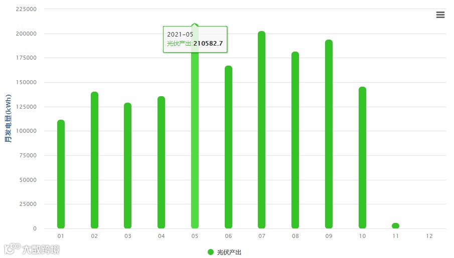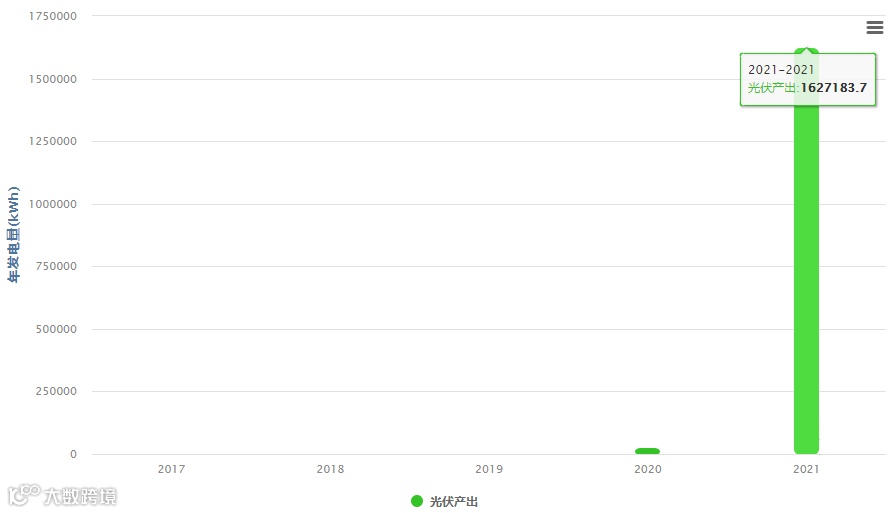 (表1 2020-2021年发电量数据,主要看2021年,今年目前发电量达1627183.7kWh,预计全年发电量可达1950000kWh)