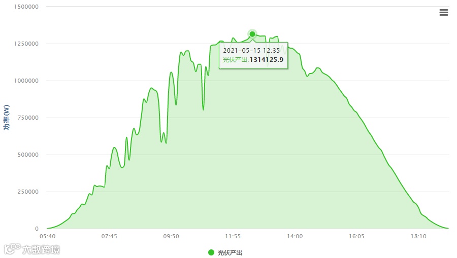 (表4 5月15日发电量数据,中午12:35为最高发电量,发电功率达1314125.9W)