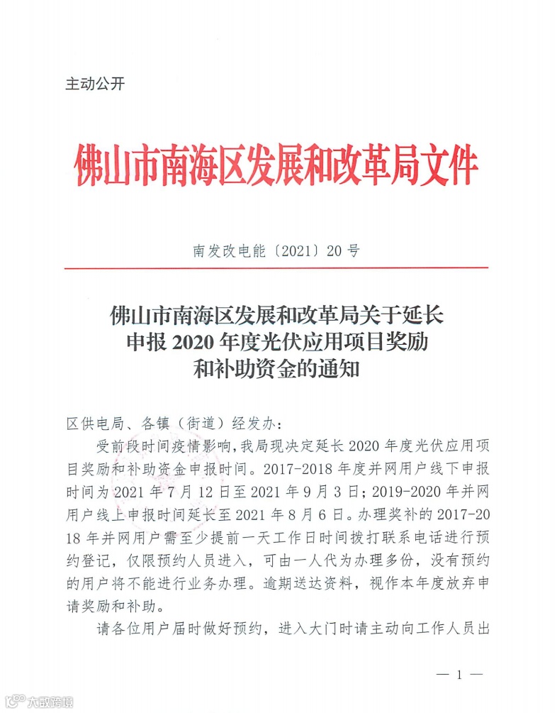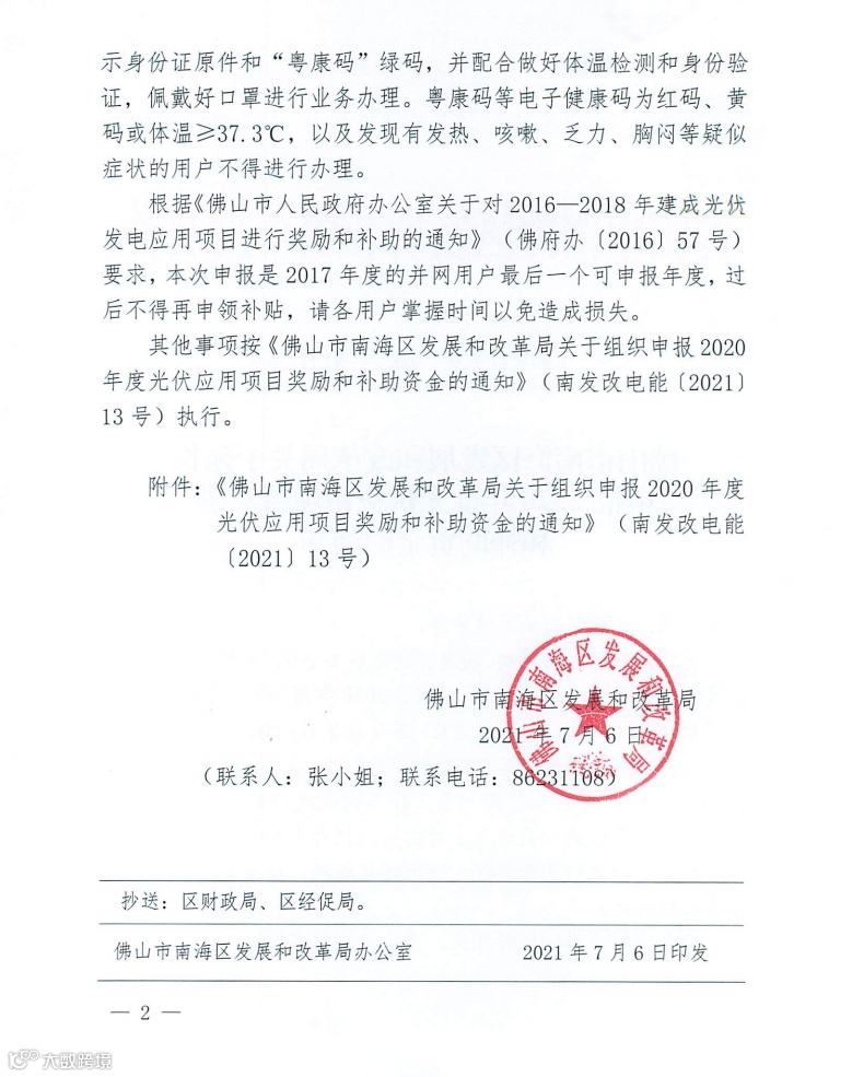 2020年度光伏应用项目奖励和补助资金的相关工作已恢复开展,请符合相关光伏补贴申报的用户请抓紧时间到佛山扶持通平台上申报,