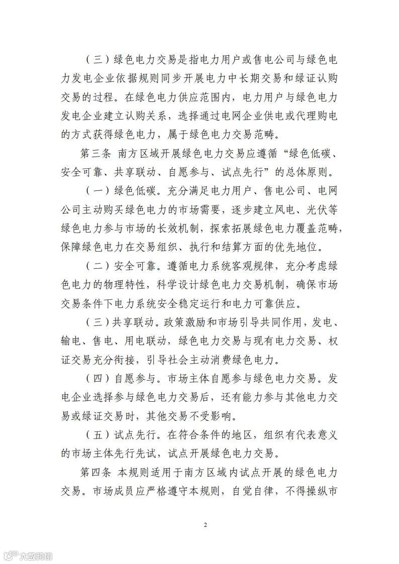 南方区域绿色电力交易规则
