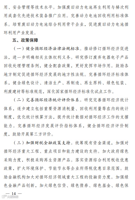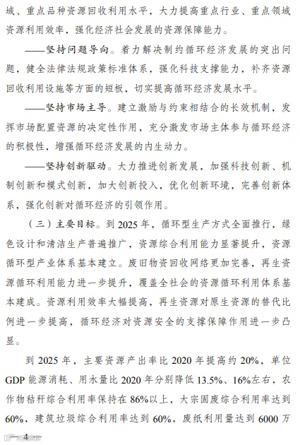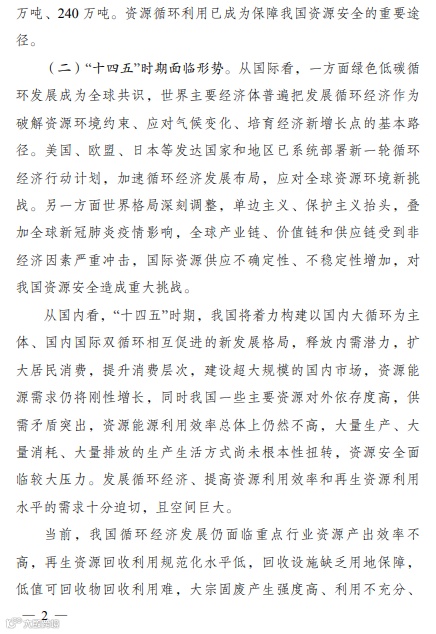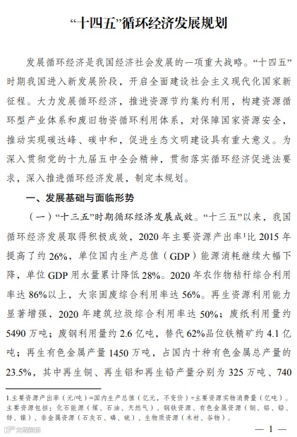 “十四五”循环经济发展规划的通知