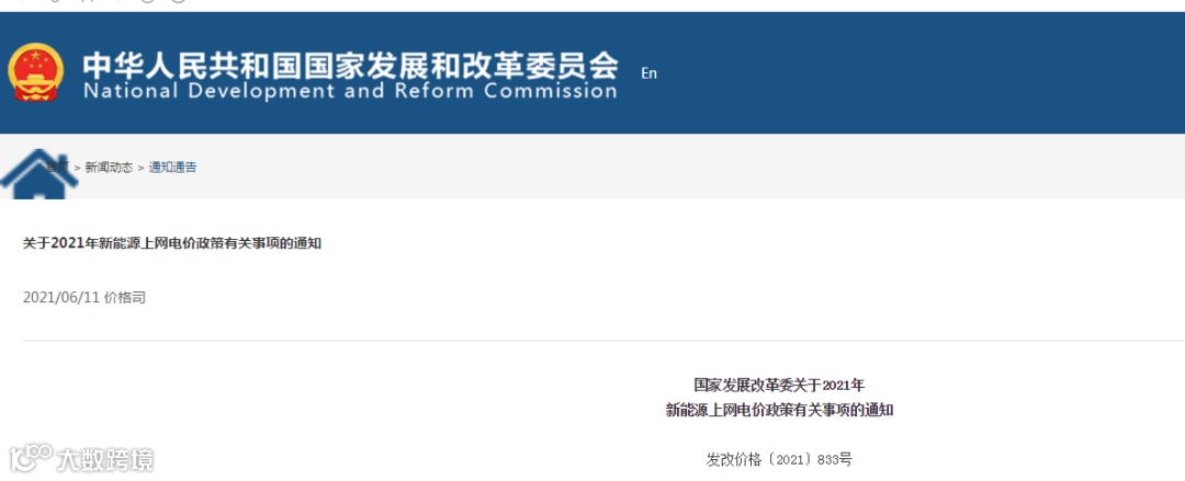 近日,国家发改委发文,发布《关于落实好2021年新能源上网电价政策有关事项的函》。其中明确了2021年新建新能源项目上网电价政策:
