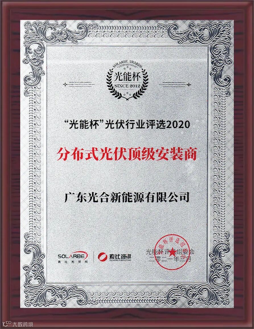 3月3日,由索比光伏网、索比咨询联合主办的2020年度“光能杯”跨年分享会暨颁奖典礼圆满落幕。凭借强大创新力、出色的品质与服务、卓越的品牌影响力,光合能源荣获2020年“分布式光伏顶级安装商”荣誉称号,为光伏行业树立了标杆。