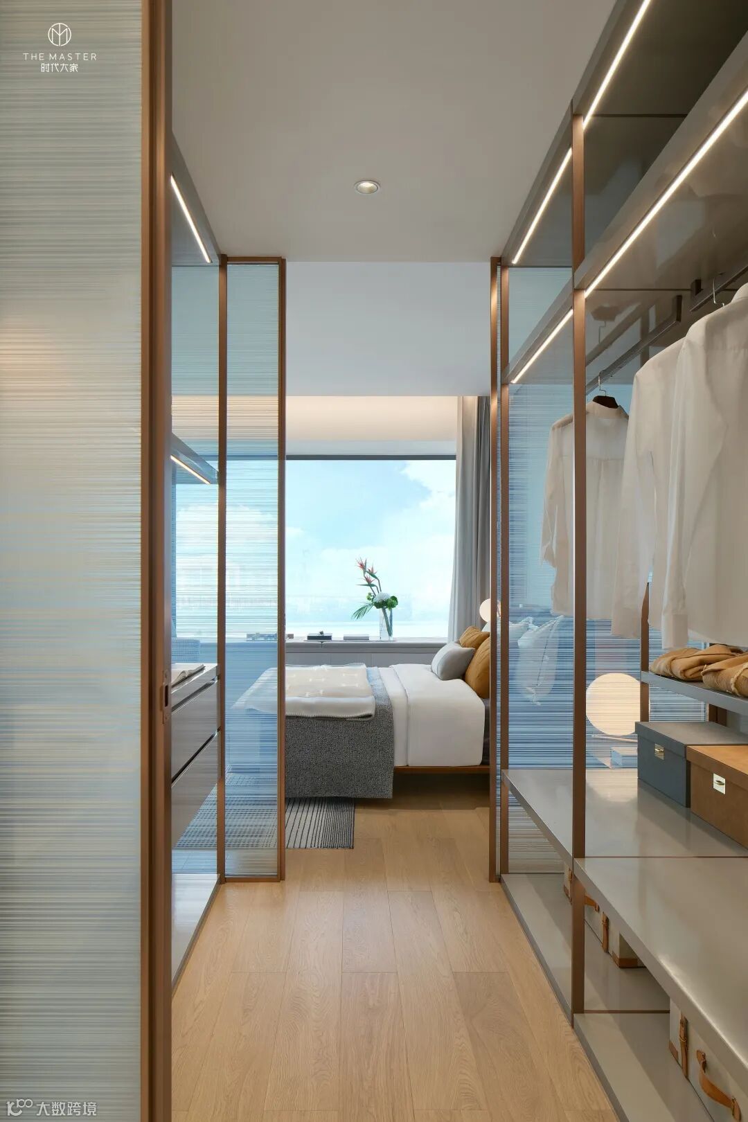 项目每一个户型的起居室都与宽景阳台相连,借由阳台造景的有意引导,让人将视线聚焦于窗外无尽舒朗的景致。极简主义的风格背后,是每一个材料中间都有完美的衔接,材料与材料、光线与光线相互呼应,获得和谐的融洽感。