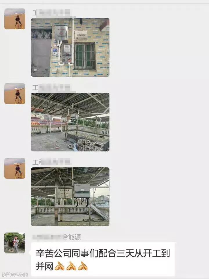 多方配合,快速并网。对于走政府流程已经轻车熟路的业务团队,准确无误收集并整理资料,避免补交资料,缩短审核时间。验收部门积极联系,供电局尽职尽责,多方配合,加快工程进度。