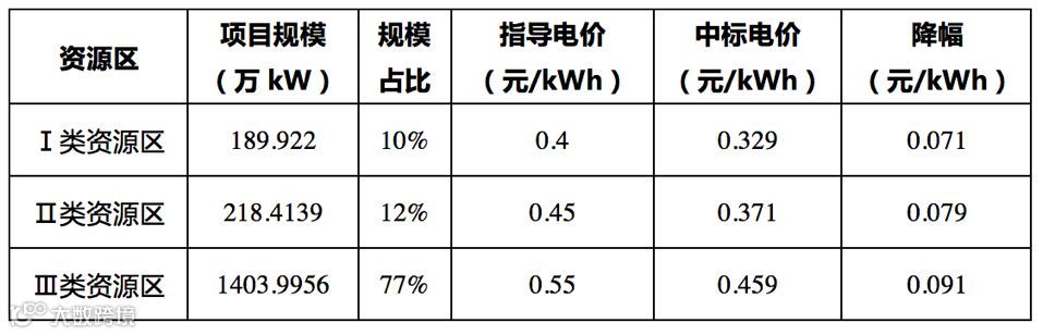 在2019年的光伏竞价中,一、二、三类资源区的加权平均电价为0.33元/kWh、0.37元/kWh、0.46元/kWh。可见,此次的征求意见稿的电价,基本跟2019年的竞价结果保持一致。
