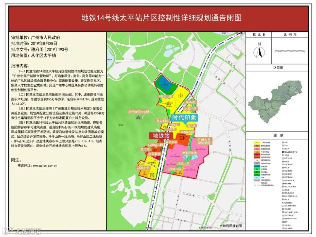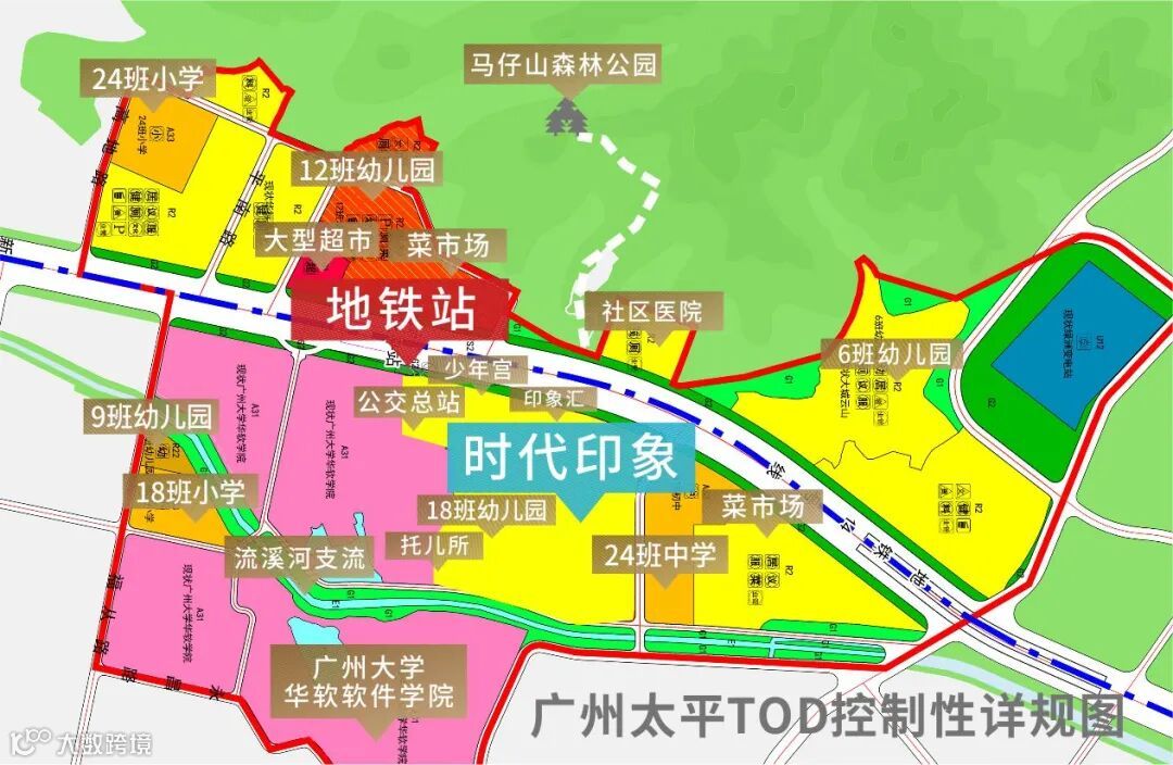 在2019年8月,广州通过的地铁14号线太平站片区控制性详细规划中指出,太平TOD镇区将被建设为山水交融的宜居新城,成为集居住、商业、商务于一体的区域级综合服务新中心,将规划3所中小学+1所大学+2个商业中心+1个森林公园,无论是教育资源、商业配套,亦或生态资源,都十分丰富多样。