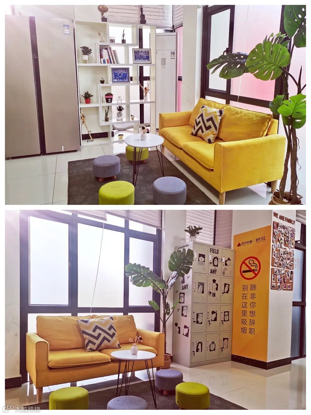 时代天汇(增城)销售部在休息室书架上增添了绿萝,重新设计了沙发和书架的摆放位置,并更新了照片墙,将新同事的照片增加进去,提升了感官舒适度。