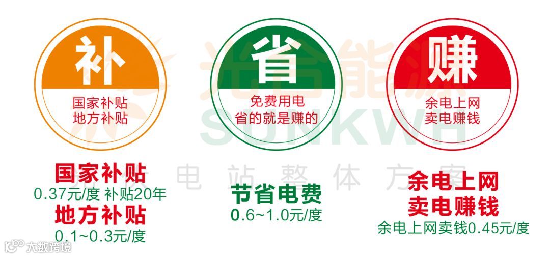 1、除了自发自用之外,每发一度电,国家直接补贴业主0.37元/度。