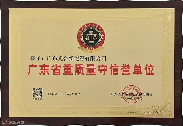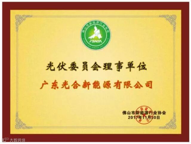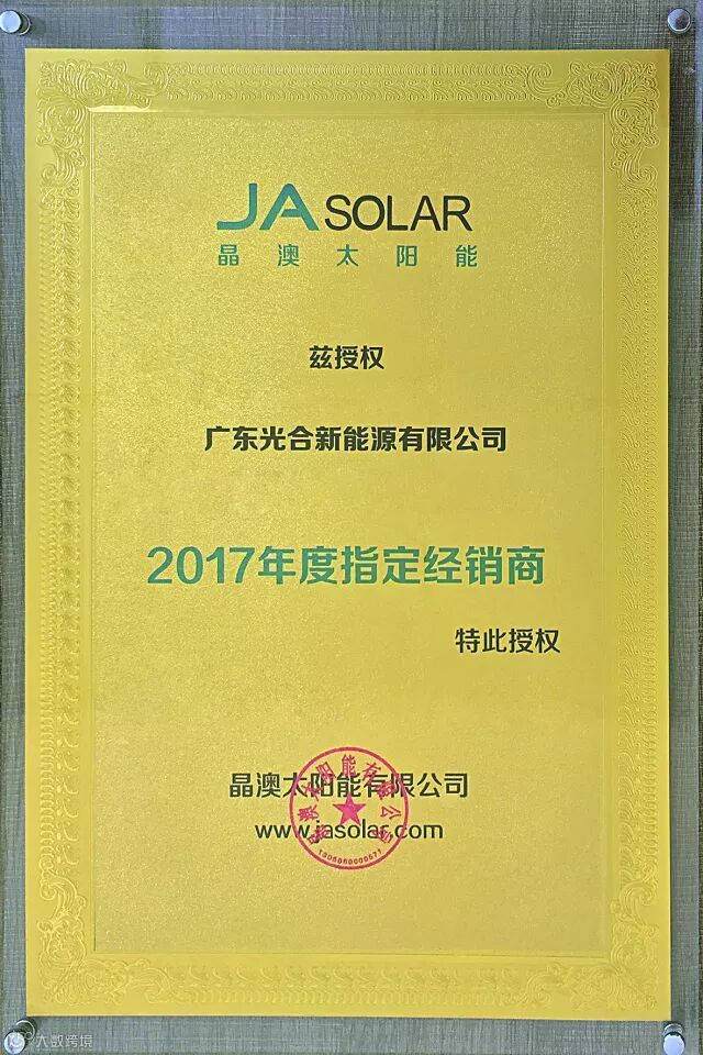 该奖由佛山市新能源行业协会颁发的,光合能源是佛山最早一批进入光伏行业的企业,在珠三角地区设立60多个服务点,为用户提供完善的光伏电站整体方案,是光伏企业的典范。