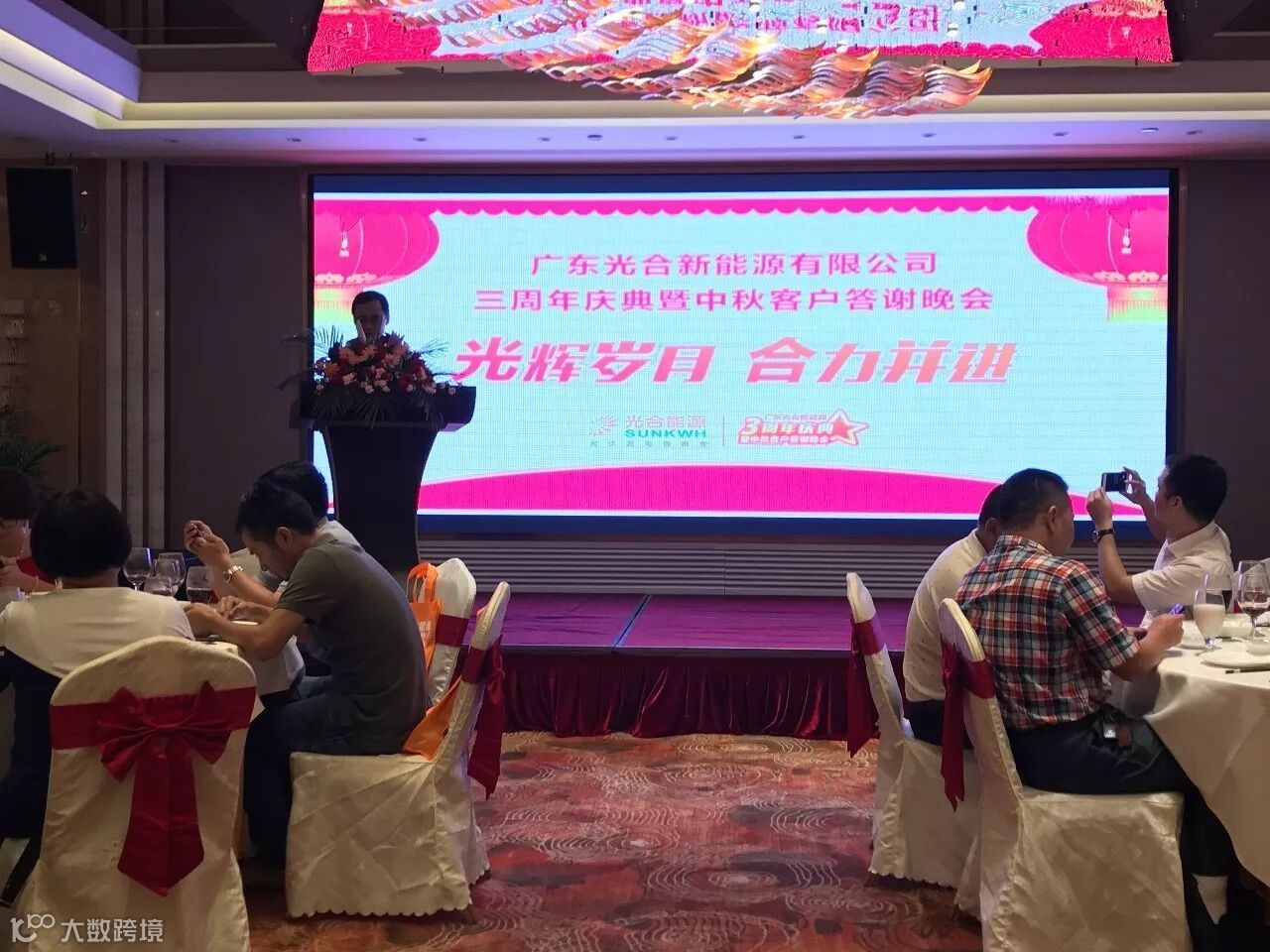 9月30日,广东光合新能源有限公司三周年庆典暨中秋客户答谢晚会在桂城希尔顿酒店隆重举行!公司全体人员齐聚一堂,共同回首3年奋斗路,展望光合新前程!