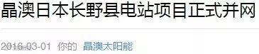 2016年2月29日,晶澳太阳能(纳斯达克:JASO,以下简称“晶澳”)位于日本长野县塩尻市的电站项目正式并网发电。