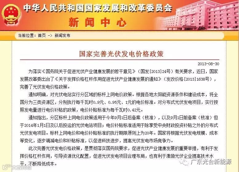 光伏发电符合国家新能源发展战略,在国家发改委公布的《关于发挥价格杠杆作用促进光伏产业健康发展的通知》中明确规定,对光伏电站实行按发电量进行电价补贴政策,补贴标准为每千瓦时0.42元。