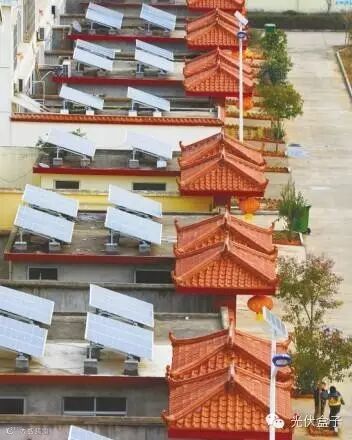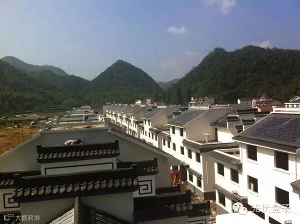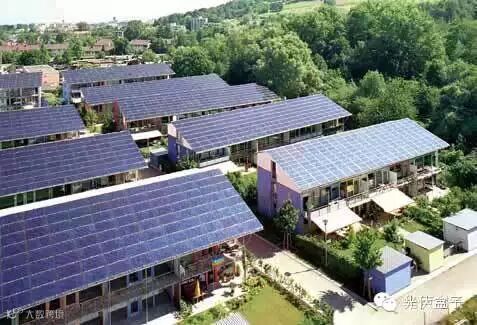 山泉村江苏省首个居民屋顶连片集中开发的光伏村——与华西村一路之隔的周庄镇山泉村。一个村投资1100万元,把150户居民的屋顶变成一个大电站,总装机容量达1.02兆瓦,年发电量约为100万千瓦。这片新建的居民小区,小桥流水、青砖黛瓦,远看好似一幅江南水墨画。