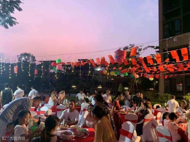 在月下家宴,每桌酒席的口味都是按照业主的地区来划分,说着熟悉的家乡话,吃在嘴边是最思念的味道。当坐在一起才知道,平日里擦肩而过的邻里是老乡,一句“原来你是我的老乡”,是惊喜与温馨。