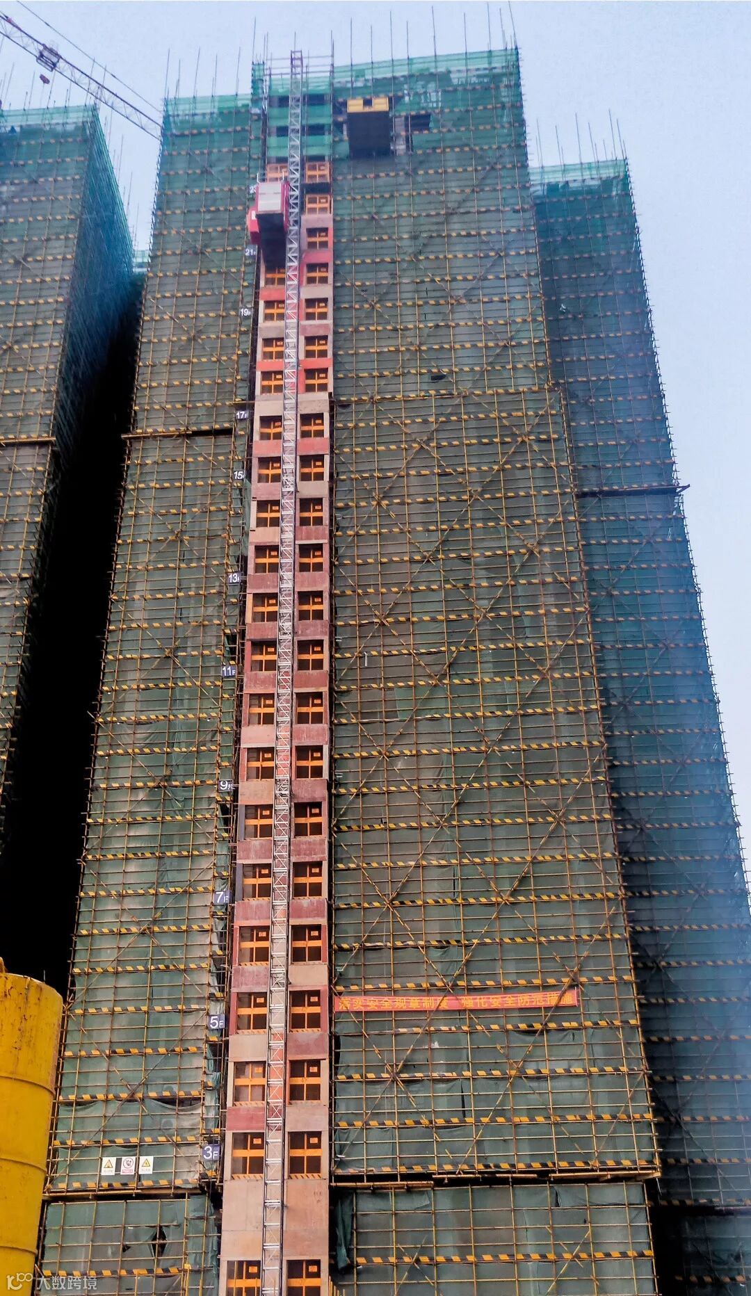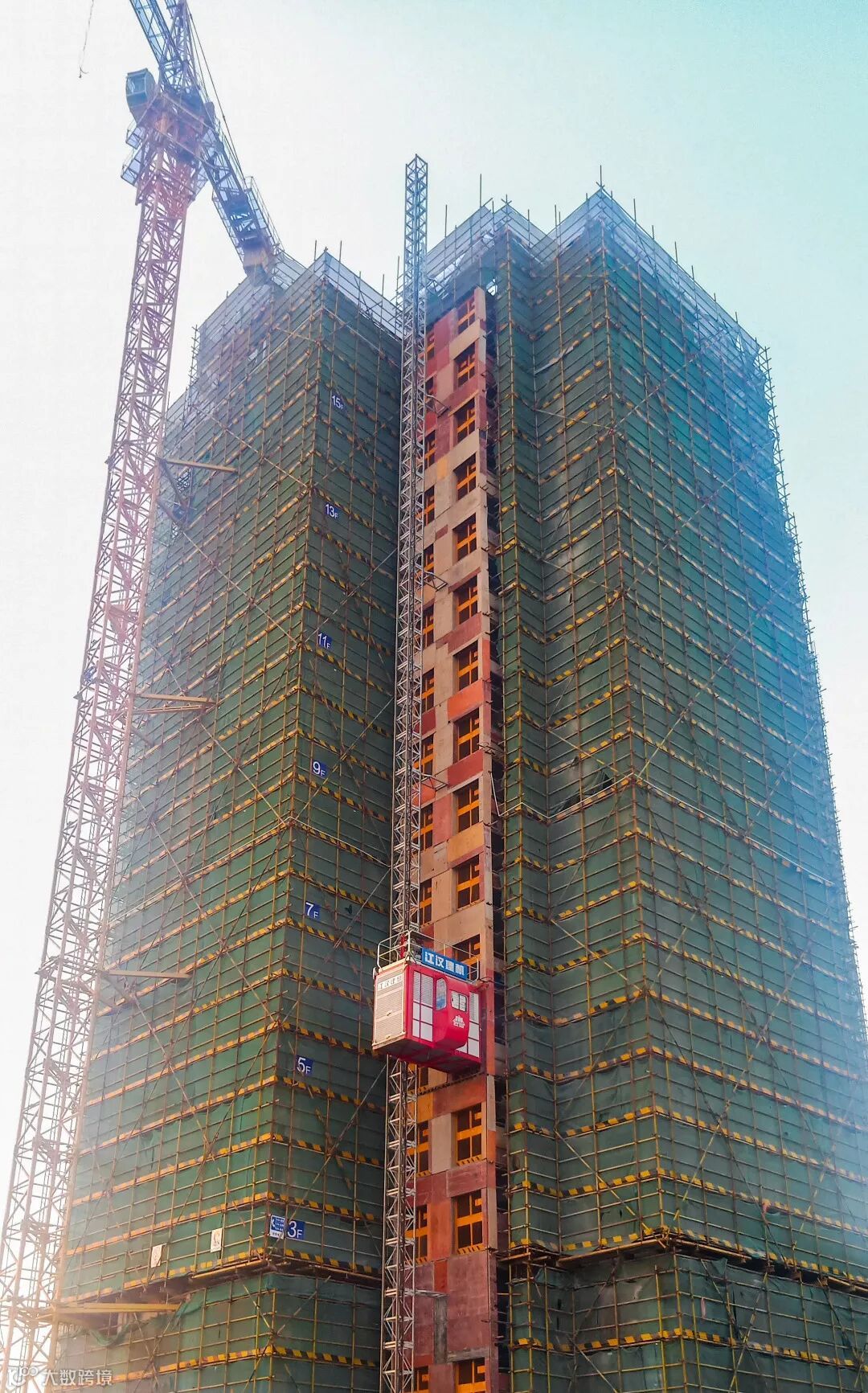 2座1梯 结构至26层 2-16层砌筑完成 18-19层施工中 4-12层抹灰完成 |