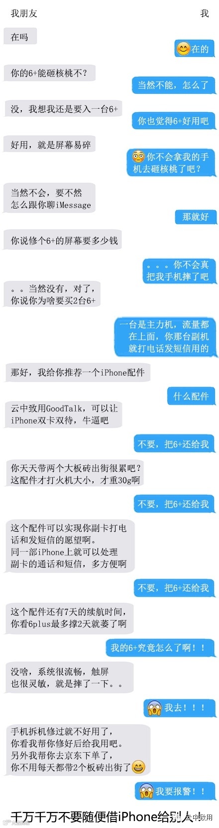 导读:我有个哥们,很想用iPhone但一直买不起。有天他看见我在用2部6+,就找我借了一部给他玩几天,他把他的山寨