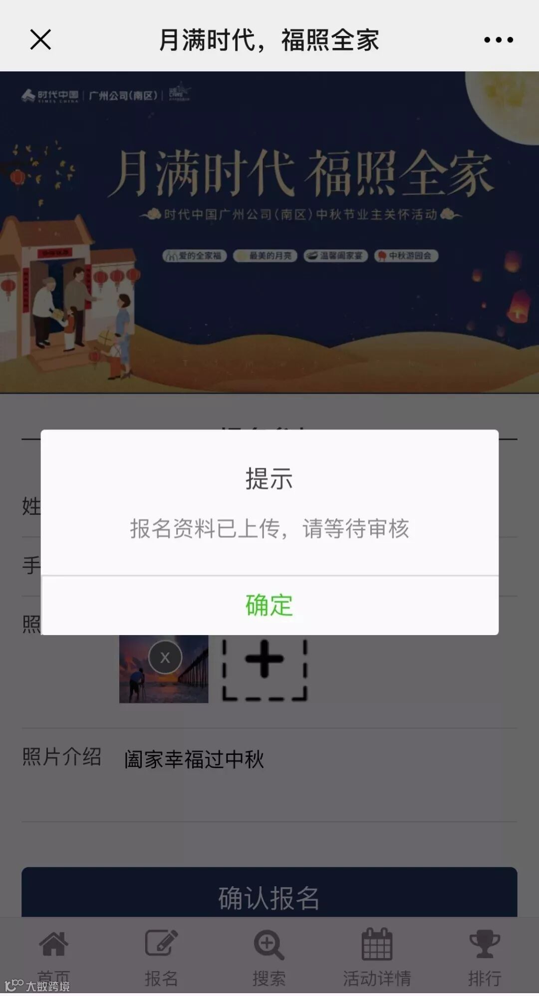 报名成功后,后台会审核参赛作品,活动上传的照片需是本人原创并与主题相关的。