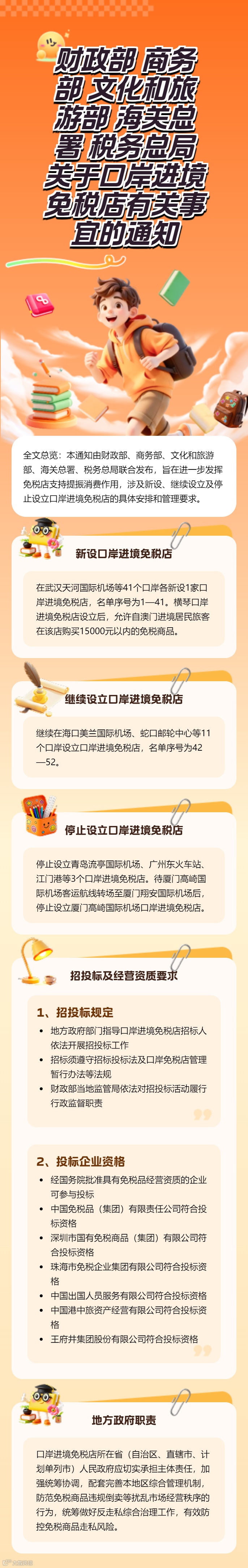 财政部 商务部 文化和旅游部 海关总署 税务总局关于口岸进境免税店有关事宜的通知