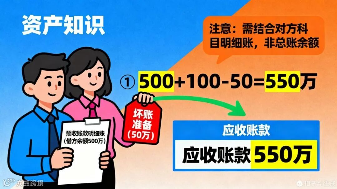 应收账款 vs 预收账款填列:两者均需结合对方科目明细账余额,借方余额归属于资产,贷方余额归属于负债,切勿直接按总账余额填列。
