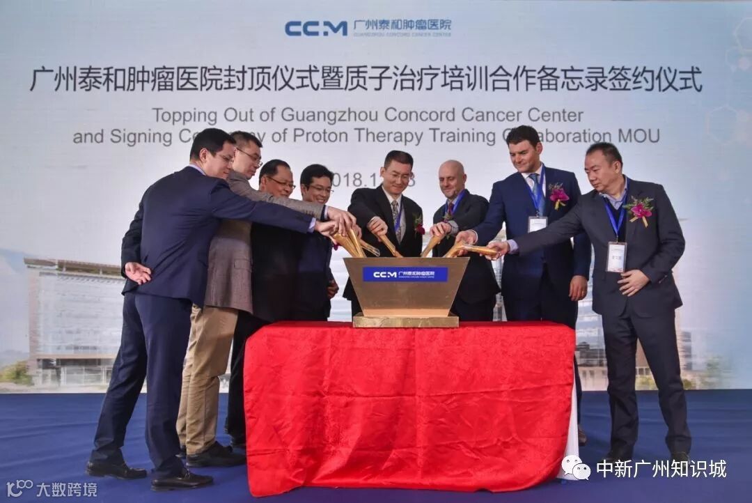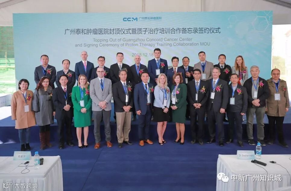 2018年12月18日,广州泰和肿瘤医院主体结构封顶仪式暨质子治疗培训合作备忘录签约仪式在知识城南起步区项目施工现场举行。