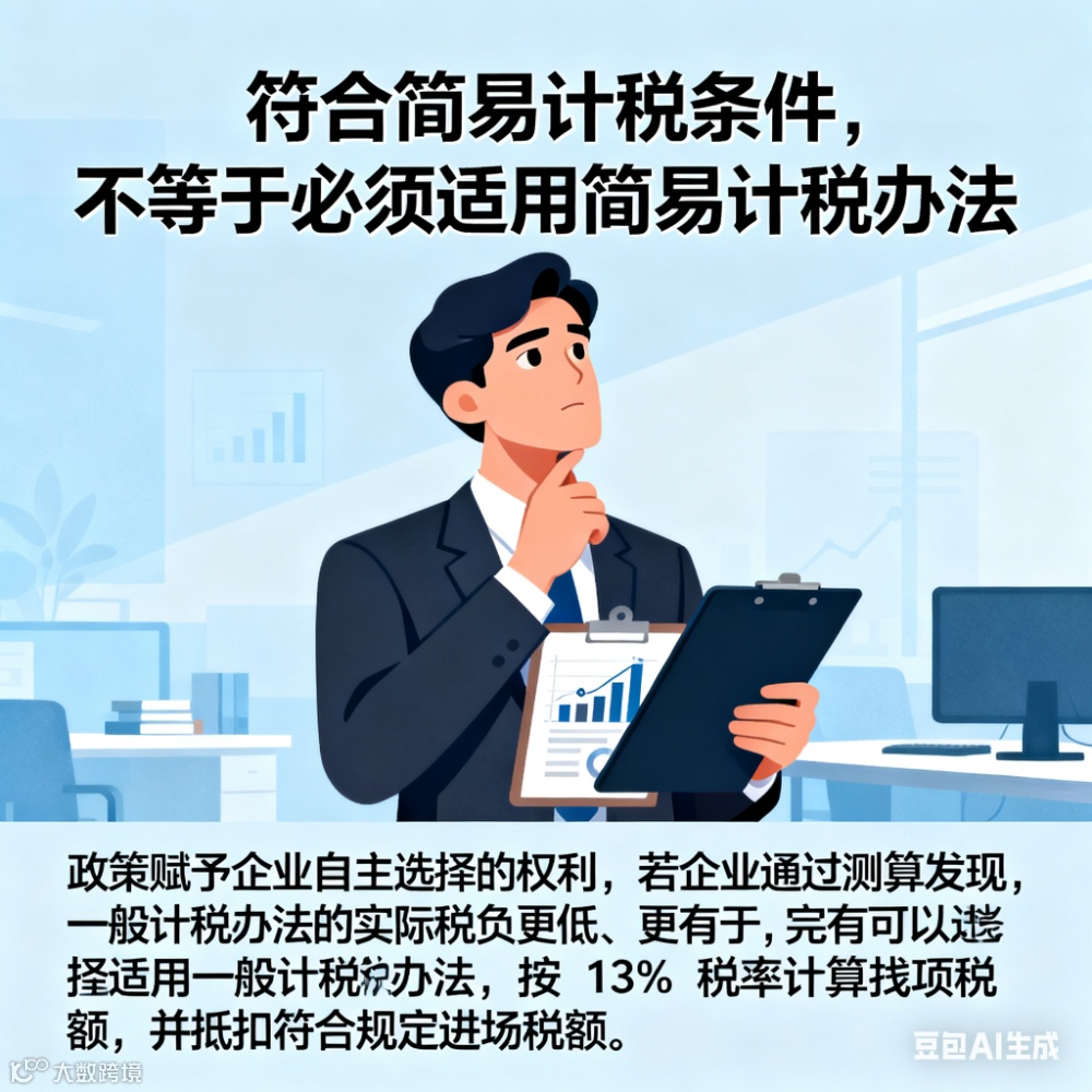 若企业进项发票获取困难(如部分砂石供应商为小规模纳税人,无法开具专用发票),或进项占比极低,3% 的征收率可能低于一般计税的实际税负。