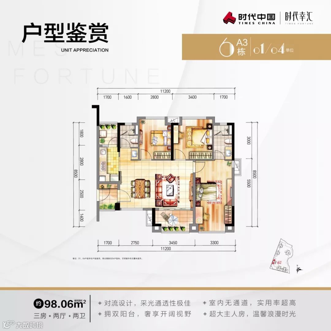 98—115㎡三到四房艺术美宅,以多重附送空间,打造舒适生活尺度,部分户型实用率高达86%!