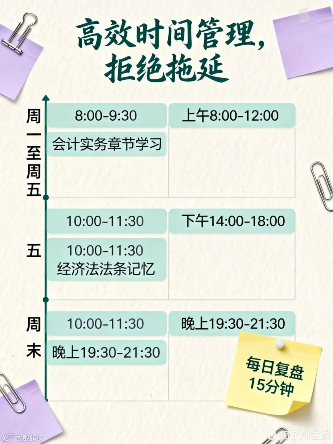 学姐提醒:时间就像海绵里的水,挤一挤总会有的。我备考时,连排队打饭、等公交的时间都用上了。推荐大家用"番茄钟工作法" ,25分钟专注学习,休息5分钟,这样效率更高。记住,每天2小时有效学习,坚持6个月 ,通过初会完全没问题!