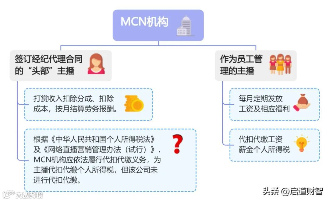 1. 员工管理主播:公司按月发放固定工资及绩效福利,双方构成劳动关系,公司按 “工资薪金所得” 代扣代缴个税,这部分操作合规;