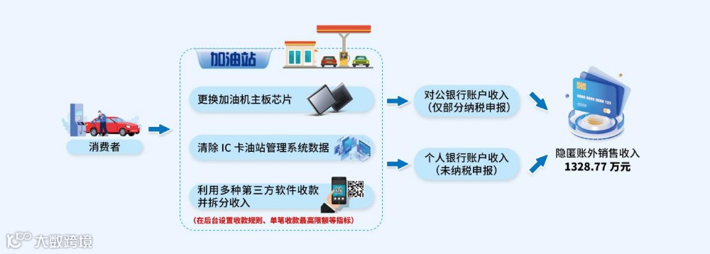 收入拆分:2022 年初与第三方收款软件商私下协商,在软件后台设置 “单笔限额 + 比例拆分” 规则 —— 单笔加油款超 500 元时,30% 转入对公账户(用于申报,营造 “正常经营” 假象),70% 转入其本人及亲属的 5 个个人账户(完全隐匿);
