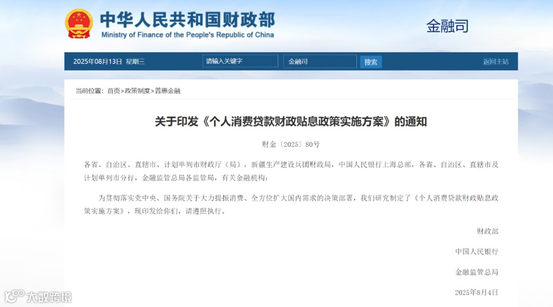 为贯彻落实党中央、国务院关于大力提振消费、全方位扩大国内需求的决策部署,我们研究制定了《个人消费贷款财政贴息政策实施方案》,现印发给你们,请遵照执行。