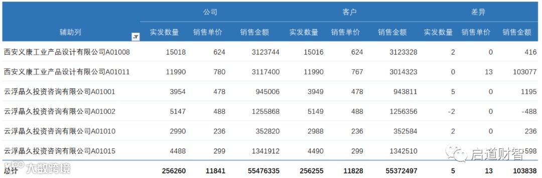 就是至少两个不同的财务数据源进行核对,对比金额、数量和单价。如果金额没有差异,一般认为数据无差异。金额的差异最终是由于数量或者单价的差异造成。所以最终还需要追溯到数量、单价的差异。