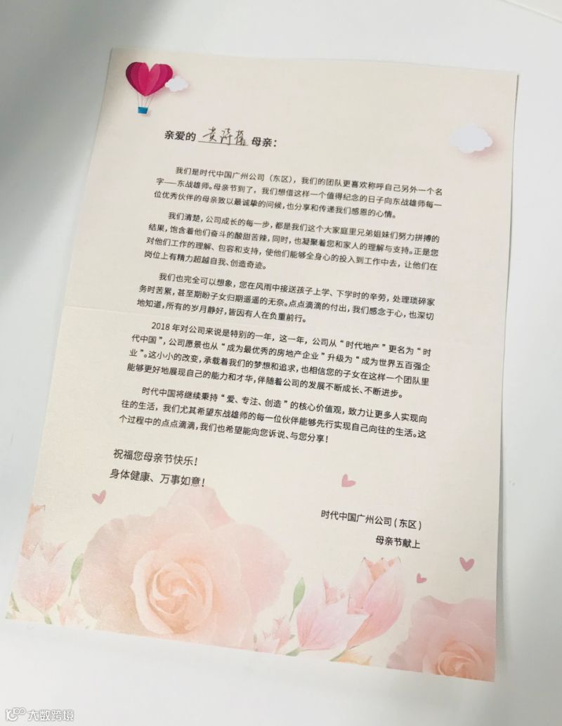 世界上的一切光荣与骄傲,都来自母亲。东战雄师借着这个值得纪念的日子,为每一位员工的母亲准备了一份走心的礼品,致以最真诚的问候!