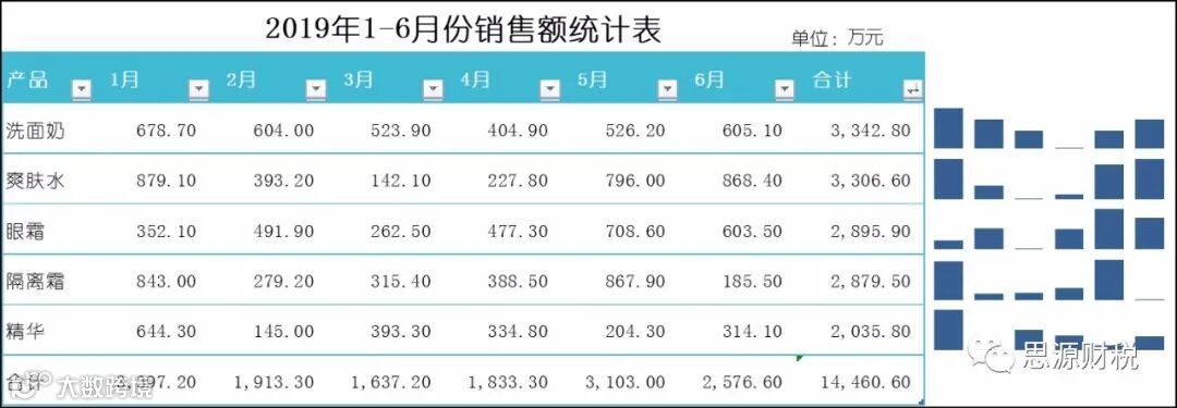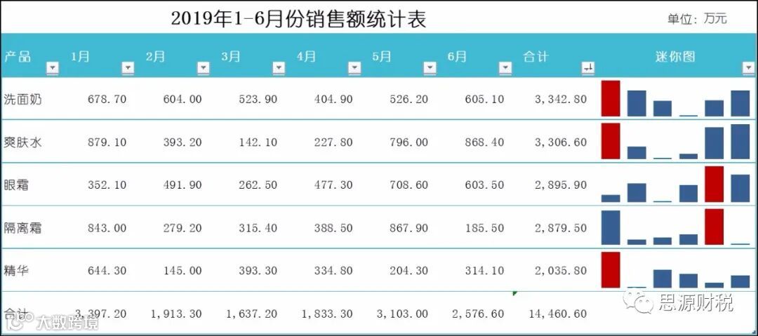 数据源:1-6月份各产品销售额统计表
