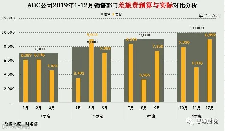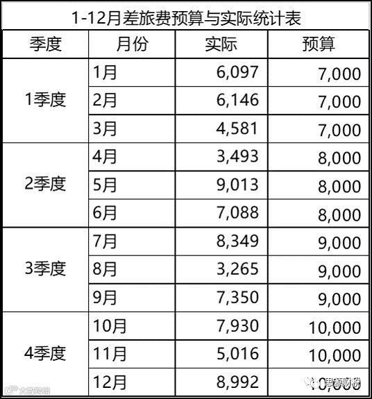 数据源:1-12月销售部差旅费预算与实际对比统计表