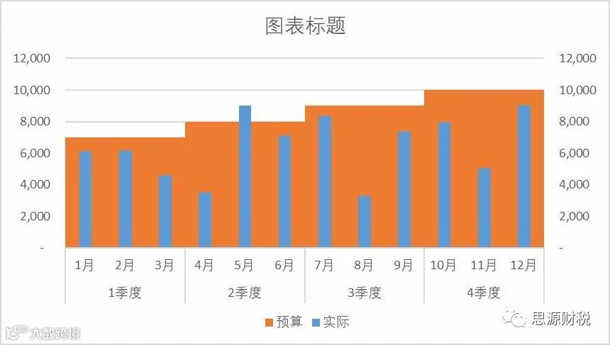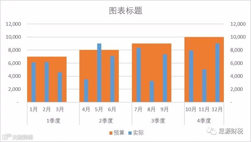 第二步:将实际系列设置为次坐标轴,次要纵坐标最大值为12000,如图1-2;
