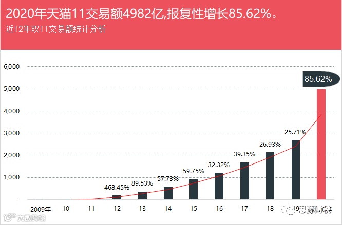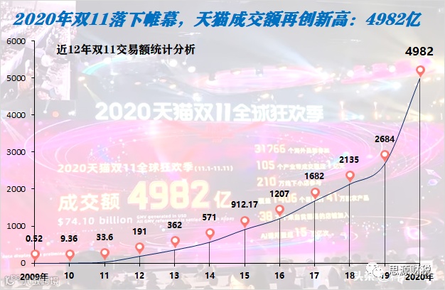 启道财智11月11日24时,2020年天猫“双11”全球狂欢季最终的交易数据定格在了4982亿元(从11月1日开始计算),比去年天猫“双11”的最终成交额2684亿元高了2298亿元、超过450个品牌成交额过亿。中国内需的爆发带动天猫“双11”再创新增长。