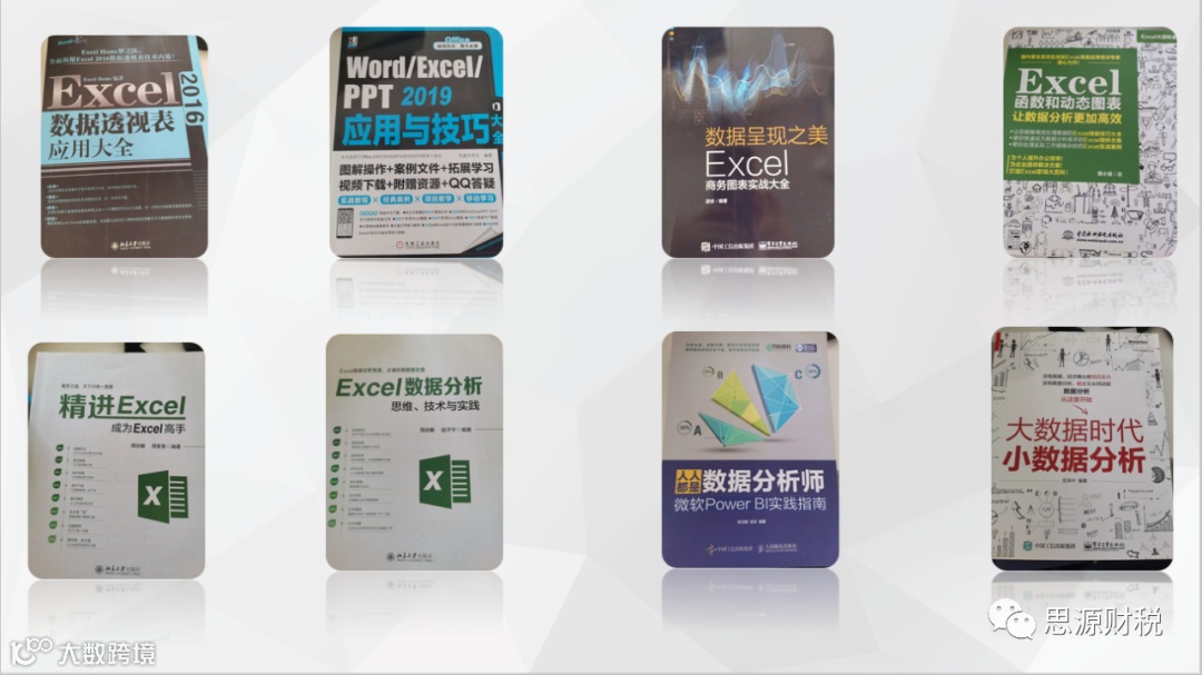 为了学习Excel相关知识,我购买了10多门线上课程,40多本Excel方面的数据,内容涉及:Excel办公技巧、函数、数据透视表、商务图表、动态图表、管理者驾驶舱、数据思维、数据建模、Power Query 、Power Pivot、Power View和Power BI等等。经过两年的持续学习,2020年已输出了4门系列课程,10多门单节课程,在公众号(思源财税)上面分享70多篇文章。给多家企业定制Excel自动化报表。持续学习,不断输出,打造属于自己的数据管理知识体系。