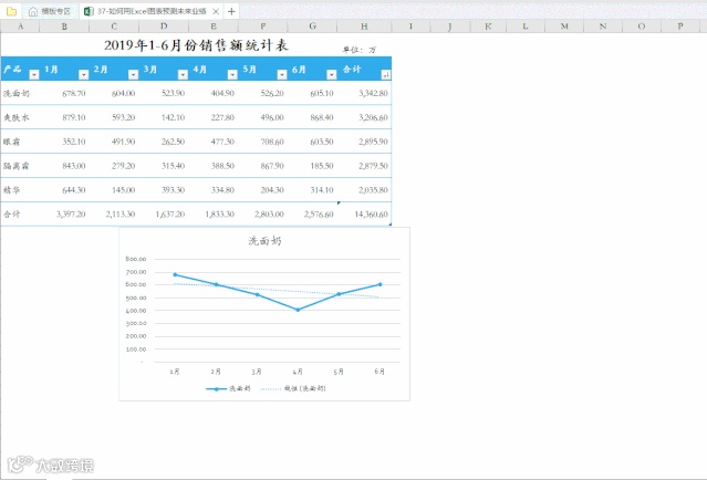 一般情况下,趋势线预测一个周期的数值。但我们也可以趋势线可以预测多个周期的数值,今天分享如何使用趋势线预测未来6个月的销售额。