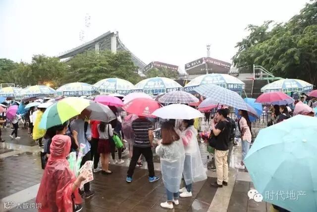 虽然今天的广州冷空气来袭,阴雨绵绵,但仍有许多观众提早到达现场,翘首企盼,共同期待演唱会开场。