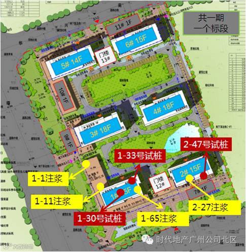 冲孔桩:目前只有1~2#楼桩图,已完成1号楼30号及33号桩试桩,已完成2号楼2-47号试桩,目前已暂停冲孔桩施工,待修规批复后大面积施工。已完成1-33号桩抽芯检测。