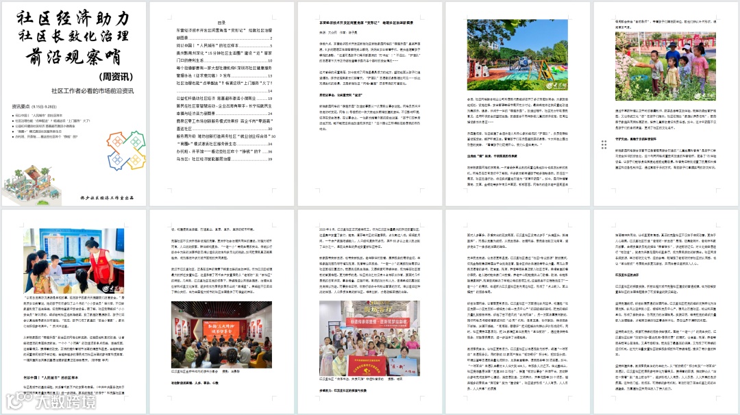 社区经济助力社区长效化治理前言观察哨(周资讯9.15日-9.28日)