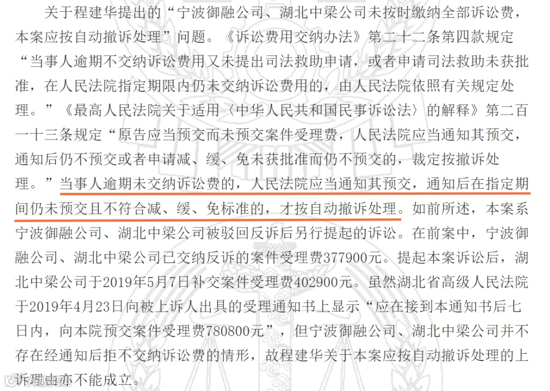 笔者不知道在此案当中,有无法院向当事人发出书面通知要求补交的情节。按照判决书原文来推断,大概率是没有的。果真如此的话,这份判决实质上是违反法律规定和最高院观点的。