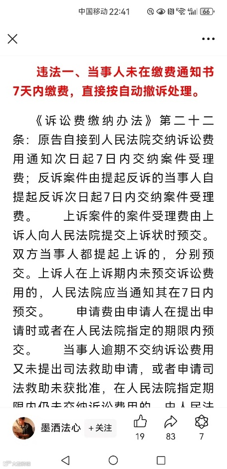 对于“不交费就判撤诉”的做法,社会公众其实也是非常反感的。例如微信公众号“墨洒法心”发出的微信文章《全国各级法院常见的三大违法行为》当中罗列的法院三大违法行为的头名,就是“当事人未在缴费通知书7日内缴费,直接按自动撤诉处理”。