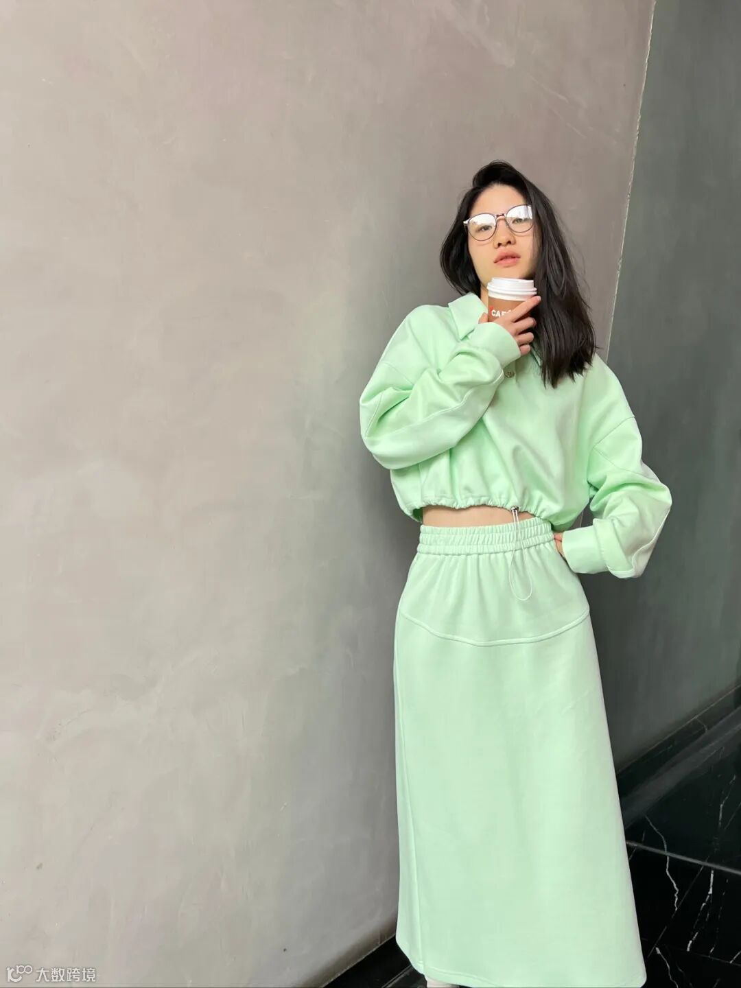 淡淡的香草绿套装