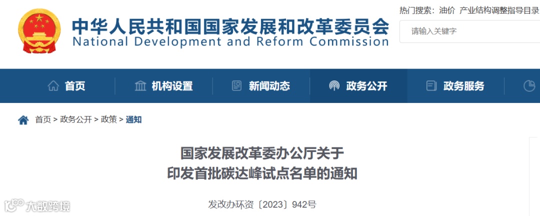 国家发展改革委办公厅关于印发首批碳达峰试点名单的通知