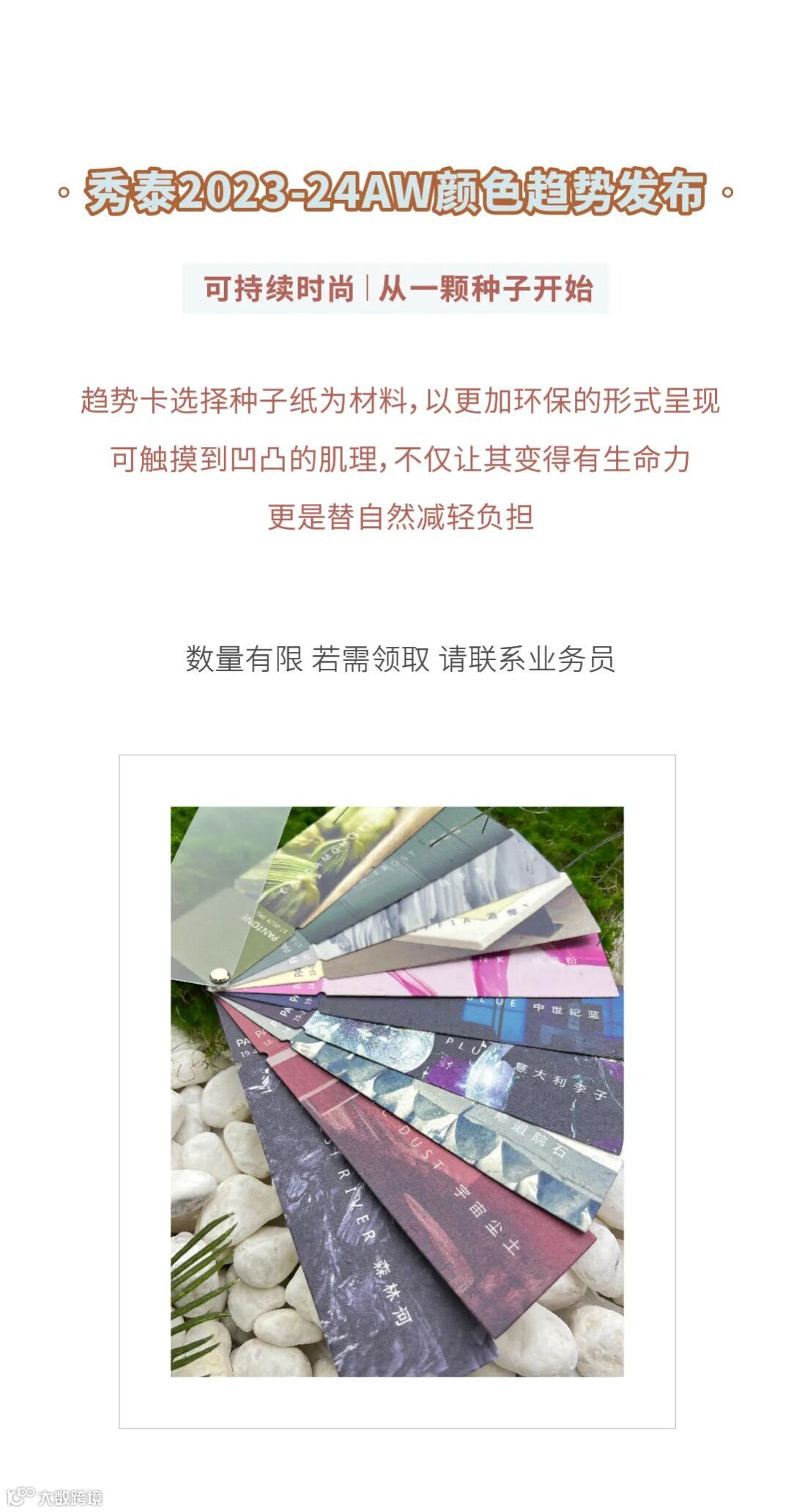 广州秀泰纺织品有限公司,是一家以创新经营为核心理念,坚持走以欧美、日韩时尚趋势为灵感进行原创设计的品牌企业,是国内针织领域创新开拓者和先行者。 诚信为本、深度服务、完美细节是秀泰的准则,合作就是美好的开始。