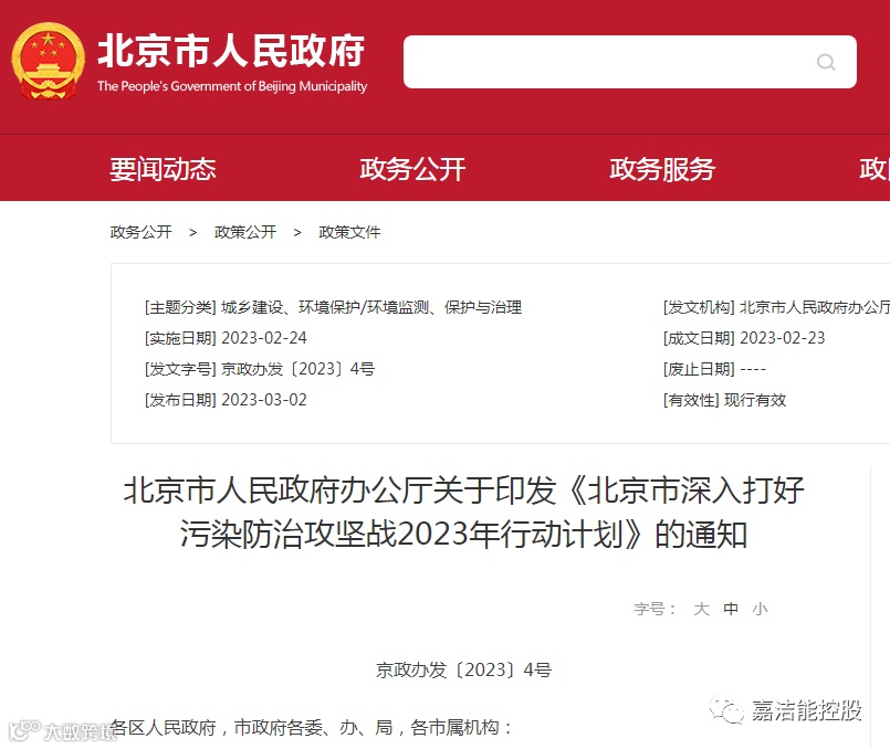2023年是全面贯彻落实党的二十大精神的开局之年,也是实施“十四五”规划承上启下的关键之年,为深入打好污染防治攻坚战,进一步提升生态环境质量,2月24日,北京市印发实施《北京市深入打好污染防治攻坚战2023年行动计划》(京政办发〔2023〕4号)(以下简称“行动计划”)。