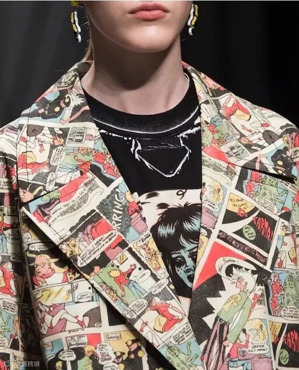 在Prada2018春夏时装秀的引领下,漫画和卡通图案开始出现在上衣和夹克的设计中,虽然范围不大,却引起了人们的重视。在花卉、格纹和标语印花统治市场多季之后,该新潮印花主题的出现能让人眼前一亮。